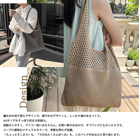 | 【春夏秋冬対応/くすみカラー】トートバッグ クロシェバッグ エコバッグ レディース メッシュ クロシェ編み ナチュラル ニット A4 軽量 かぎ編み おしゃれ 大容量 リゾート 通勤 通学 学生 ■特徴 毎日に寄り添う万能バッグ オシャレなくすみカラー 毎日のスタイルに、ルーズにさりげない抜け感を ナチュラルで柔らかな風合いと軽さが魅力のクロシェニットバッグです♪ チクチクしない、軽量 柔らかく手に馴染むしっかりとした軽やかニット 大きく開いてたくさん入る! 編み目の切り替えデザインで、軽やかなデザインと、しっかり感のあるつくり。 A4サイズもすっぽり収まる収納力。 肩掛けしやすく、デイリー使いはもちろん、お買い物やお出かけ、サブバッグにもぴったりです。 コーデに馴染むナチュラルカラーで、季節を問わず活躍。 「ちょっとそこまで」も、「今日はたくさん歩く日」も、このバッグがあなたに寄り添います。 ■カラー カーキ ライトブラウン ダークブラウン ブラック グリーン グレー グレージュ ※カラーは各々のモニターにより、多少の違いがある事、ご了承下さいませ。 ■サイズ cm 画像参照 ■素材 アクリルニット 注意点 ※メーカーの製造ロット差で多少 デザインが変更になる場合があります。 ※海外輸入の商品になりますので多少の汚れ、傷がある場合があります。 |
