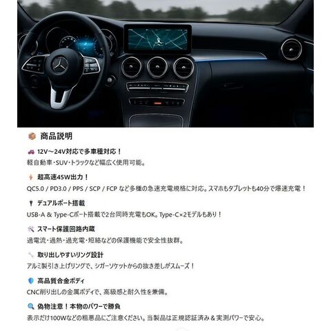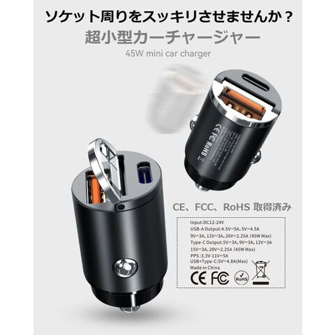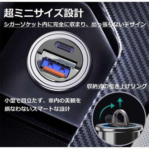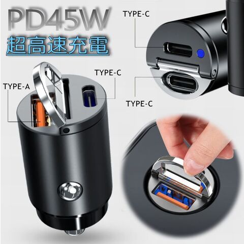 【高速充電/45W/PD対応】シガーソケット 充電器 USB TYPE-C タイプC PD充電器 高速 急速充電 車載 コンパクト カーチャージャー 車載充電器 iPhone android ipad スマホ アクセサリー 2ポート 車載ガジェット