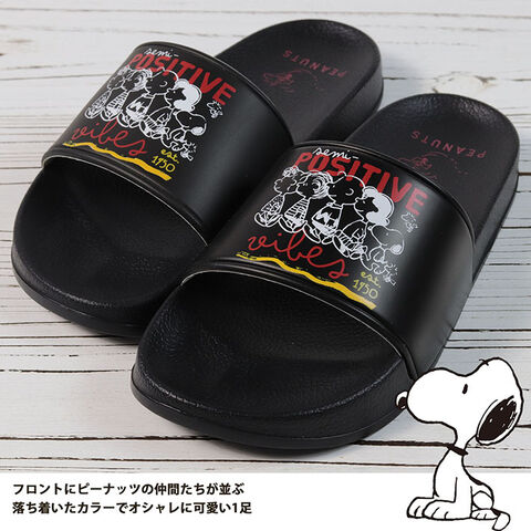 【スヌーピー/PEANUT】シャワーサンダル レディース PEANUT スヌーピー SNOOPY Y_KO 83H35 7986730 スリッパ 室内 アウトドア 靴 チャーリー ベランダ(L,ブラック)