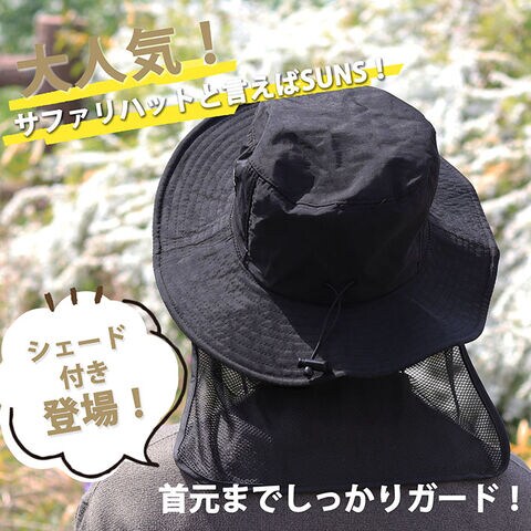 サファリハット シェード メンズ 帽子 ハット レディース SUNS(サンズ) 撥水 アウトドア キャンプ NEK ★REVL H-051 大きいサイズ UVカット プレゼント(普通サイズ,SHADE_BK/BLACK(H_051))