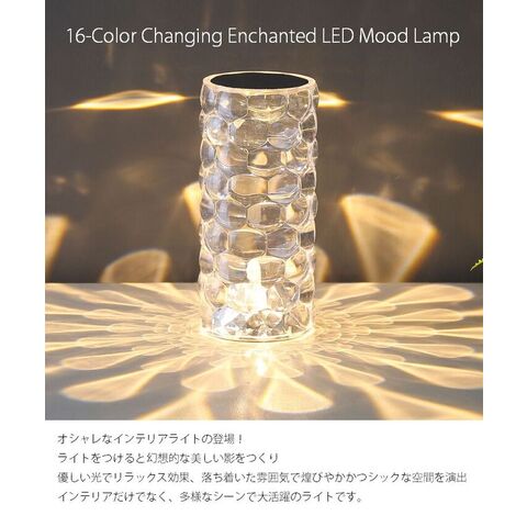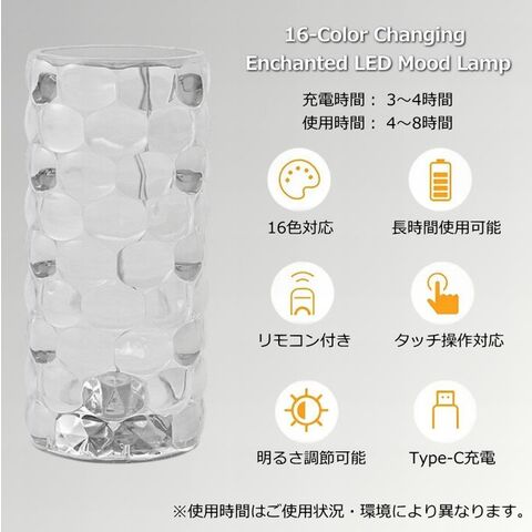 LED ライト テーブルライト 充電式 インテリアライト クリスタル 間接照明 タッチ Type-c USB 7986758(ONESIZE,クリア)