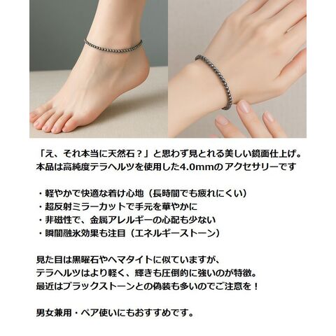 テラヘルツ アンクレット ブレスレット メンズ レディース NEK 7986779 4.0mm 波 パワーストーン 天然石 アクセサリー プレゼント ギフト (アンクレット,テラヘルツ)