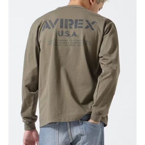 【背面ロゴがカッコいい】AVIREX ロンT メンズ 長袖Tシャツ Y_U 7834230014 7986842 MIL. STENCIL T-SHIRT OFFICIAL LOGO アヴィレックス(XL,ナチュラル(414))