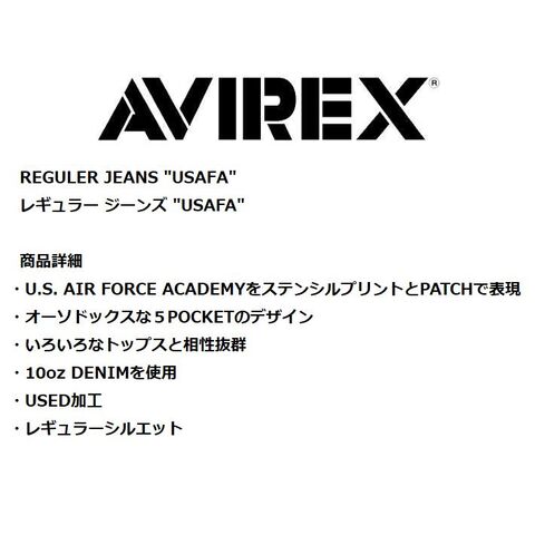AVIREX ジーンズ デニム メンズ REGULER JEANS USAFA Y_U 7835111004 7986869 レギュラー ジーンズ USAFA アヴィレックス(XL,ブラック(10))