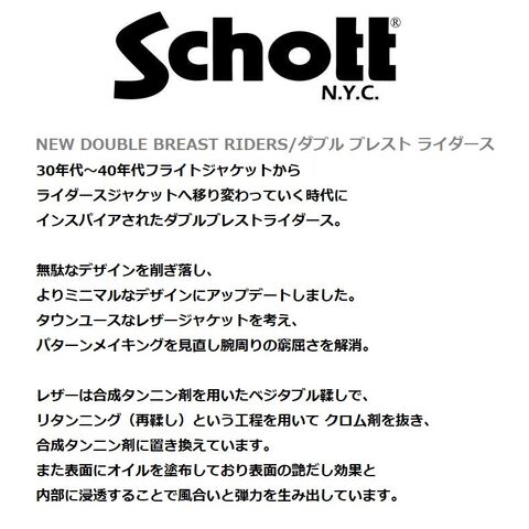 Schott ショット 本革 ライダースジャケット メンズ レザー ジャケット ダブル ブレスト ライダース アウター Y_U 7825950010 7986920(S,ブラック(10))
