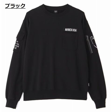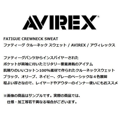 【4色展開】AVIREX FATIGUE CREWNECK SWEAT スウェット メンズ ロンT ミリタリー 裏パイル Y_U 7833932004 7986940(XL,ブラック(10))