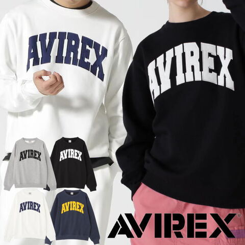 AVIREX スウェット 厚手ロンT トレーナー シャツ ジャージ 長袖シャツ 裏起毛 メンズ アップリケ刺繍 Y_U 7833932003 7986954(M,ブラック(10))