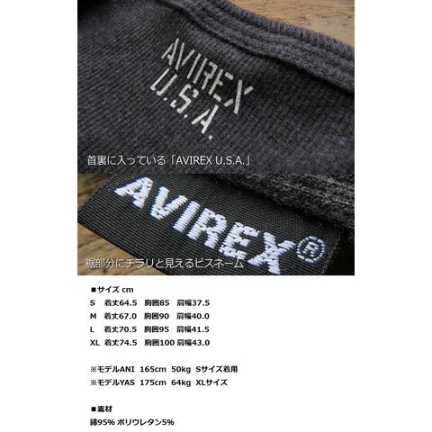 AVIREX ノースリーブ シャツ メンズ DAILY NO SLEEVE SHIRT Y_U NEK 7986966 無地 ストレッチ Tシャツ 7834935001 7835935001(M,グレー(20))