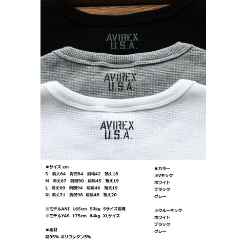 AVIREX ワッフル Tシャツ メンズ Y_U NEK 7986967 Vネック 6143149 6143150 7833134007 7835934008 7833134008 7835934009(XL,Vネック_グレー(20))