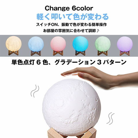 | 【叩いて色が変わる】LED 卓上 ライト ムーンライト 月ライト 20cm 間接照明 テーブルランプ 照明 インテリア おしゃれ 月のランプ 月 寝室 おしゃれ 照明 3Dプリント USB充電式 調色 調光 色切替 ギフト 月 ランプ リビング ナイトライト ■特徴 灯すだけ・光溢れる幻想的な空間を演出、球型月のカバーと木製の台がシックなルームライト。 ベットルームや居間にあかりを灯すだけで癒しの空間を演出してくれます。 月の表面を再現 明かりをともすと影ができ雰囲気が楽しめます♪ 軽く叩いて色が変わる! 点灯カラーを変える際は、軽く本体を叩いて下さい♪ 6色点灯・3パターングラデーション!お部屋の雰囲気に合わせて調節! 単色点灯はもちろん、ゆっくり流れるように切り替わるグラデーション等 月の様々な表情がより楽しめます! ※防水仕様ではございませんので、水濡れにはご注意下さい。 USB充電式で置く場所に迷わない♪ コードレス!熱を持ちにくく手で触っても大丈夫 microUSBで簡単充電!コンセントでの充電の場合は別途ACアダプターが必要です。 就寝前のリラックス時間に あたたかい暖色系の光はベッドルームのナイトライトや枕元のベッドサイドライトにもピッタリ♪ 目に優しい夜間照明で自然とくつろぐことができ、癒し効果… 消灯してもオシャレなラタンのテーブルライト。 リビングのテレビボードやサイドボード、玄関などにオブジェとして飾れるインテリア雑貨 お店やサロンなど雰囲気作りにも◎ 【付属品】 ・ライト本体 ・充電ケーブル(microUSB) ・木製台座 ・説明書(日本語表記なし) ■カラー ホワイト 20cm ※カラーは各々のモニターにより、多少の違いがある事、ご了承下さいませ。 ■サイズ cm 20×26cm ■素材 PVC 木製台座 LEDライト 注意点 ※メーカーの製造ロット差で多少 デザインが変更になる場合があります。 ※海外輸入の商品になりますので多少の汚れ、傷がある場合があります。 | ||