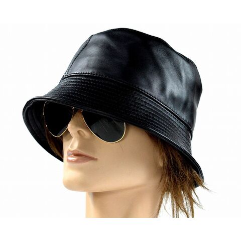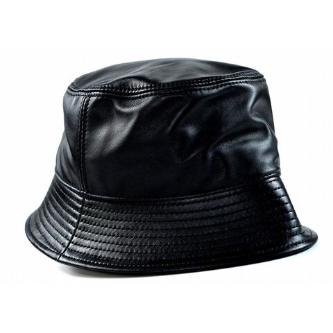 本革 レザー バケットハット 帽子 ハット メンズ レディース 羊革 シープレザー 7991009 ブラック 黒(ONESIZE,ヒョウ柄)