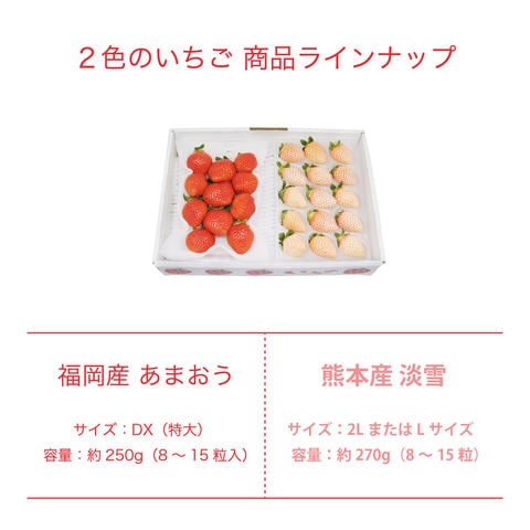 | 内容 | 福岡産 あまおう/熊本産 淡雪 あまおう約250g/淡雪 約270g |