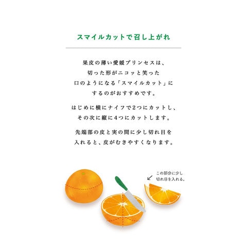 | 安心・安全 | 当店では、ノーワックス・防腐剤未使用の愛媛プリンセスをお届けしております。 |