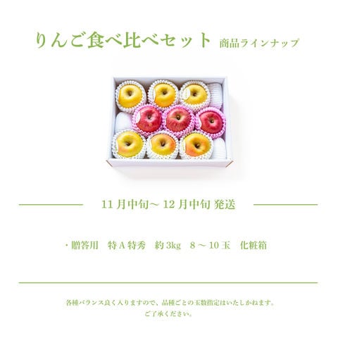 【送料無料】【ギフト】3種の りんご 食べ比べセット 3kg 特A 特秀 贈答用 長野産 サンふじ ぐんま名月 長野産 シナノゴールド 「3種のりんご」果物セット【予約品】11月中旬~12月中旬