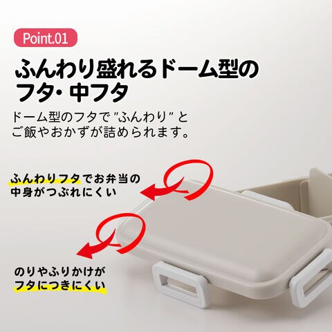 ドーム型のフタで、"ふんわり"とご飯やおかずが詰められる。