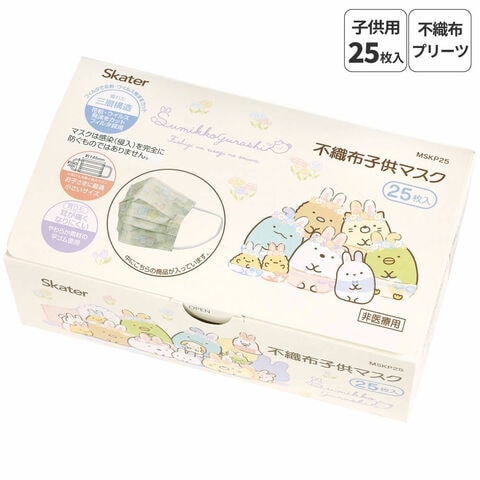 マスク 子供用 不織布 プリーツ マスク 25枚入り キッズ MSKP25 キャラクター 箱型 子供 こども 園児 すみっコぐらし うさぎのおにわ skater スケーター