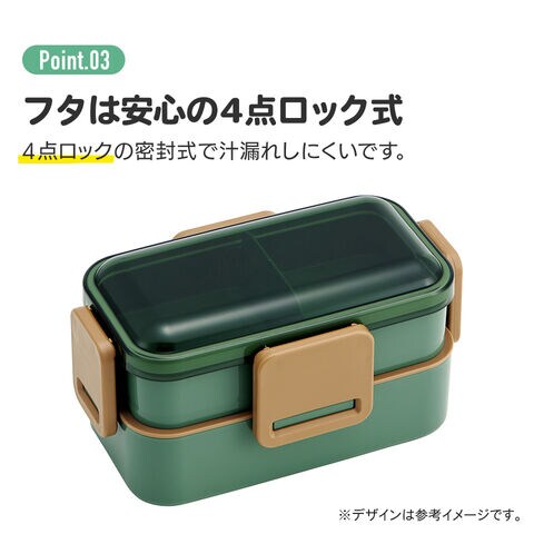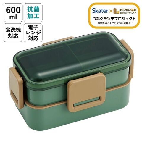 弁当箱 二段 仕切り 食洗機 レンジ 対応 600ml かわいい 抗菌 セージグリーン 緑 色 無地 シンプル PFLW4AG skater スケーター キッズドア