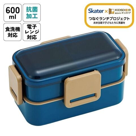 弁当箱 二段 仕切り 食洗機 レンジ 対応 600ml かわいい 抗菌 オーシャンブルー 青 色 無地 シンプル PFLW4AG skater スケーター キッズドア