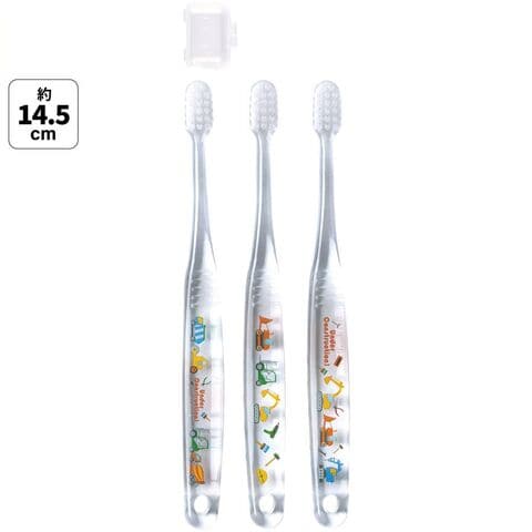 歯磨き コンパクトヘッド 毛の硬さ:やわらかめ キャップ付き(1個) 子供用 キッズ 透明 クリア はたらく クルマ くるま 車 車柄 男の子 男子