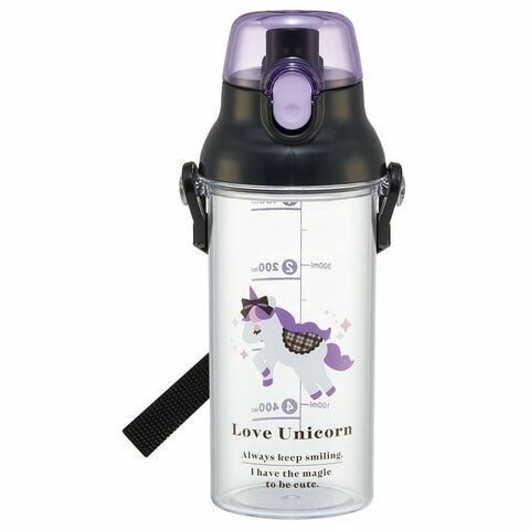 ドリンク マーカー ボトル 480ml 水筒 直飲み 水分補給 メモリ付き 透明 PSB5TRC ラブ ユニコーン かわいい スケーター skater