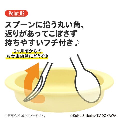 スプーンに沿う丸い角、返りがあってこぼさず、すくいやすい!