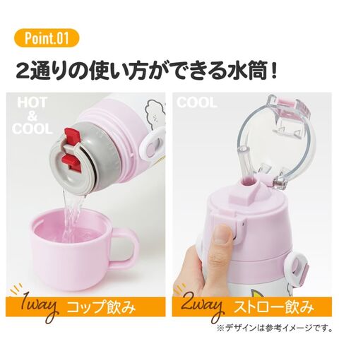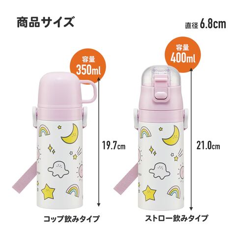 水筒 キッズ ワンタッチ ストロー コップ 付き 2WAY ステンレス ボトル かわいい SKCP3 シナぷしゅ skater スケーター