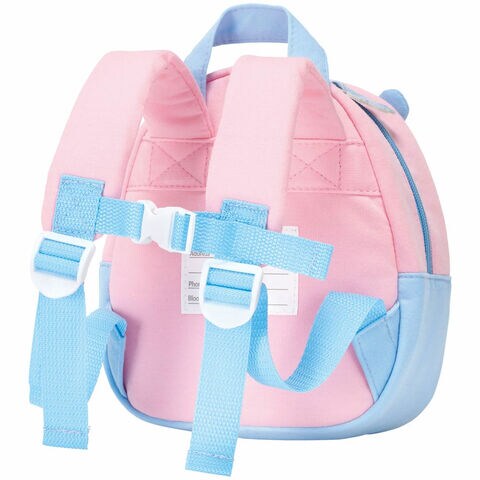引っ張られた際にリュックが脱げてしまうのを防ぐ安全ベルト・ネームタグ付き。