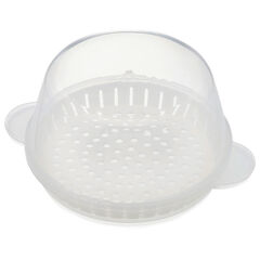 電子レンジ加熱時に、本体とザルの間を空気が循環し、ふっくらムラなく温まります。