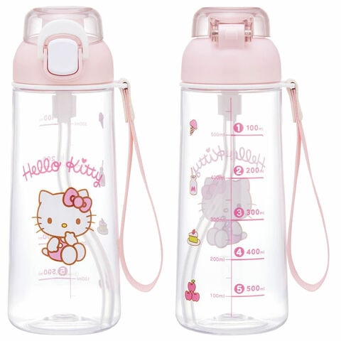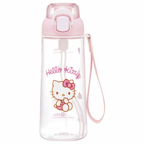 ワンプッシュ ストロー ボトル 水筒 630ml 透明 クリア 子供 キッズ かわいい PSHPO6 キティ ハローキティ キティちゃん 女の子 スケーター skater