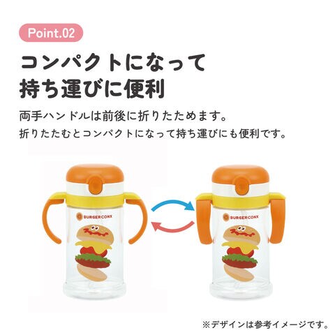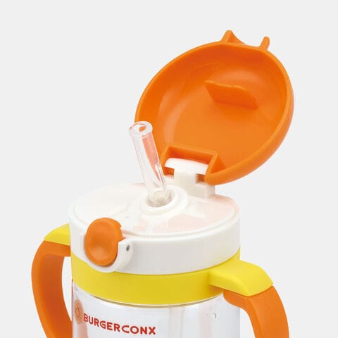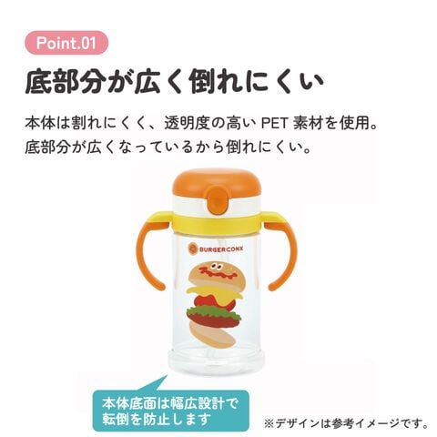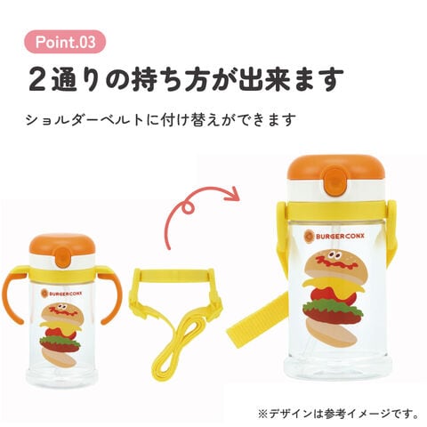 プラスチック PET 水筒 ボトル シリコンストロー 折りたためるハンドル ショルダーベルト ワンプッシュオープン ベビー 子供用 目盛付き 透明 クリア バーガーコンクス BURGER CONX 男の子 女の子