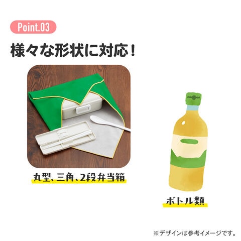 丸型、三角、2段弁当箱、ボトルなど様々な形状に対応!