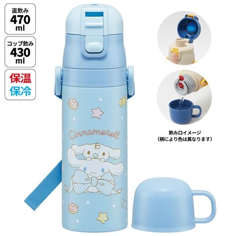 ステンレス 水筒 キッズ 2WAY 470ml/430ml ワンタッチ コップ付き SKDC4 シナモロール ビックリボン サンリオ スケーター Skater
