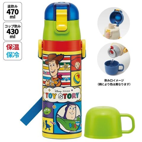 ステンレス 水筒 キッズ 2WAY 470ml/430ml ワンタッチ コップ付き SKDC4 トイストーリー 25年 ディズニー スケーター Skater