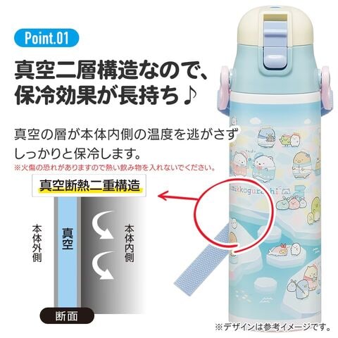 水筒 キッズ 直飲み ワンタッチ ステンレス 保冷 約 580ml ワンプッシュ オープン SDC6N すみっコぐらし すみっこ ぐらし しろくまのふるさと skater スケーター