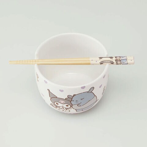 陶器製 ボウル 箸 セット 600ml 21cm 食器 鉢 お椀 丼 竹箸 カトラリー 焼き物 陶物 可愛い 便利 CHBWH1 クロミ クロミちゃん バク サンリオ skater スケーター