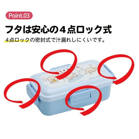 プラスチック 弁当箱 ランチボックス ふわっとドーム型フタ 4点ロック 仕切り パッキン 抗菌加工 食洗機対応 電子レンジ対応 日本製 いしよわちゃん サンエックス