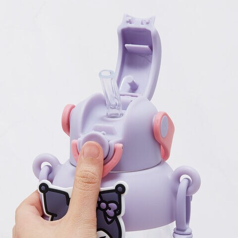ラバー マスコット付き ストロー ボトル 水筒 650ml ショルダーベルト付き 子供 PRMC7ST クロミ クロミちゃん サンリオ スケーター skater