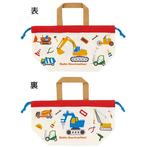 KB7W はたらく クルマ お弁当袋 2枚 セット 幼稚園 キャラクター ランチ巾着 子供 巾着袋 小学生 2枚入 くるま 車 車柄 skater スケーター