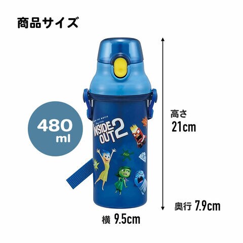 水筒 直飲み プラスチック 大容量 480ml 食洗機対応 キッズ 幼児 ワンタッチ PSB5SANAG インサイド・ヘッド2 ディズニー Disney スケーター skater