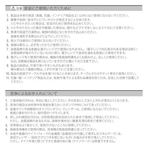※ボーンチャイナは、釉薬(うわぐすり)のない部分を食酢や梅酢に接した状態で長時間放置しないでください。素地を傷めます。