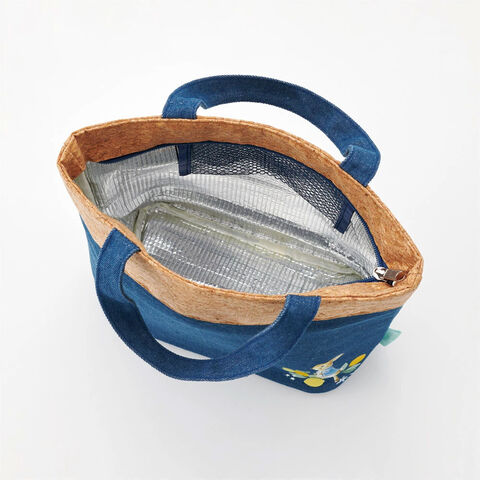 デニム地にコルクがおしゃれなキャラクターランチバッグ♪