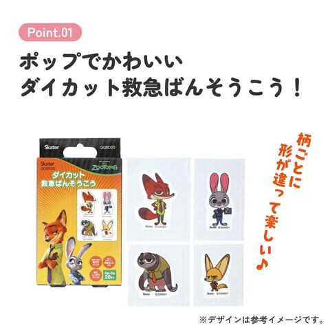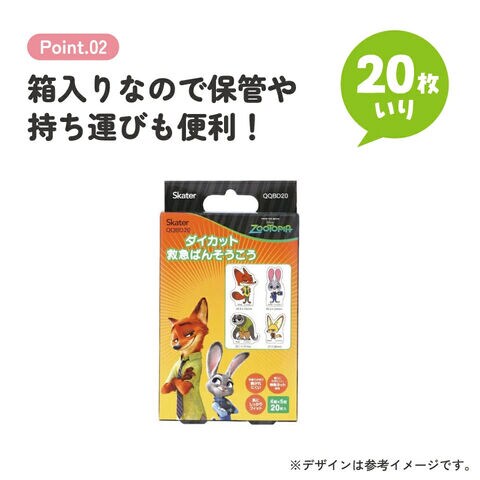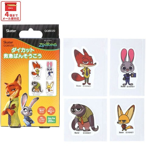 ダイカット 絆創膏 20枚入 ばんそうこう 携帯 可愛い かっこいい キャラクター QQBD20 ズートピア ニック ジュディ フィニック ディズニー skater スケーター
