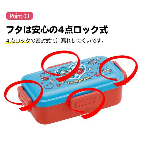 弁当箱 大人 一段 仕切り 食洗機 レンジ 対応 抗菌 日本製 容量 530ml PFLB6AG ロック はんぎょどん ハンギョドン パーティ スケーター skater