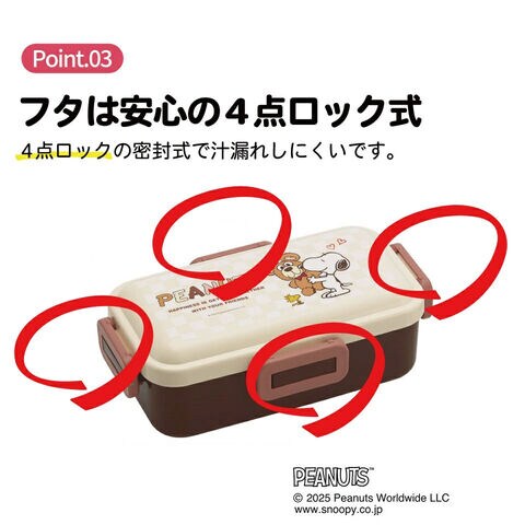 プラスチック 弁当箱 ランチボックス ふわっとドーム型フタ 4点ロック 仕切り パッキン 抗菌加工 食洗機対応 電子レンジ対応 日本製 スヌーピー snoopy ピーナッツ 女性 レディース