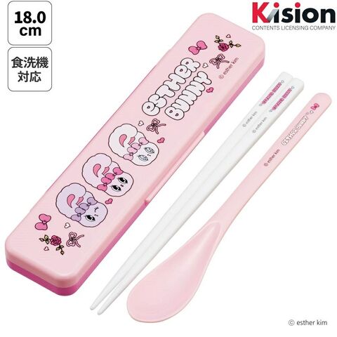 音が鳴らないコンビセット(箸・スプーン) 箸18cm お箸 スプーン セット 食洗器対応 お弁当 カトラリーセット CCS3SA エスターバニー 韓国 キャラクター