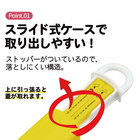 ケースは、指で引き出すスライド式で、衝撃に強くこわれにくい丈夫な構造です。