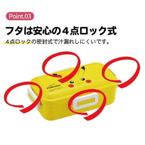 プラスチック 弁当箱 ランチボックス ふわっとドーム型フタ 4点ロック 仕切り パッキン 抗菌加工 食洗機対応 電子レンジ対応 日本製 ポケットモンスター ポケモン ピカチュウ 男の子