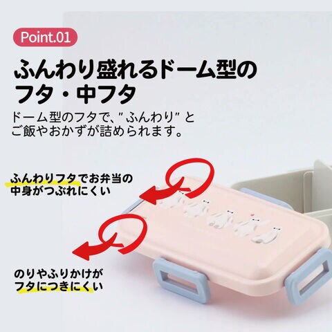 プラスチック 弁当箱 ランチボックス ふわっとドーム型フタ 4点ロック 仕切り パッキン 抗菌加工 食洗機対応 電子レンジ対応 日本製 ベイマックス(25)