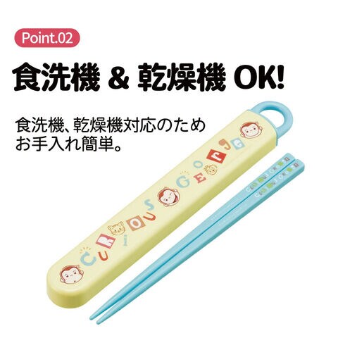 ABS2AM おさるのジョージ お箸セット 食洗機対応 箸入れ カトラリー お弁当 箸 skater 箸ケース アルファベット ひとまねこざる skater スケーター