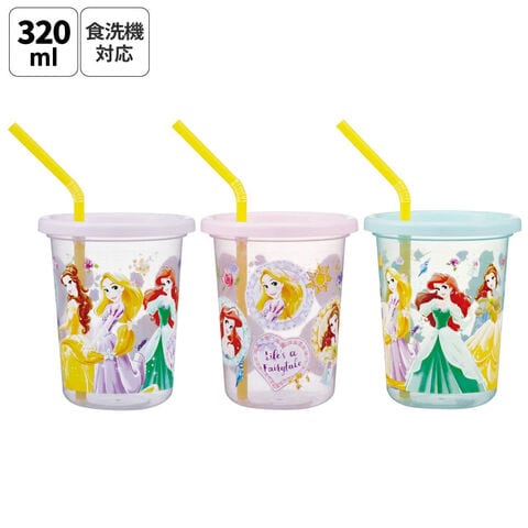 スケーター ストロー付きタンブラー 3個セット プラスチック 蓋付き ふた付き コップ skater SIH3ST ディズニー プリンセス 26年